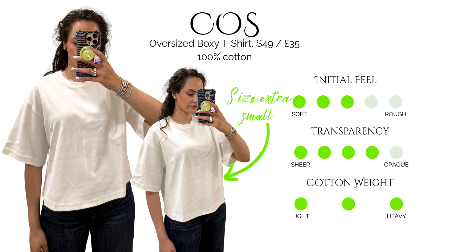 My Top 3 Picks would be the COS Oversized Boxy, Banana Republic Refined Tee, and the Leset Margo - they all feel substantial, arenāt sheer and I like how they all fall/fit on me.