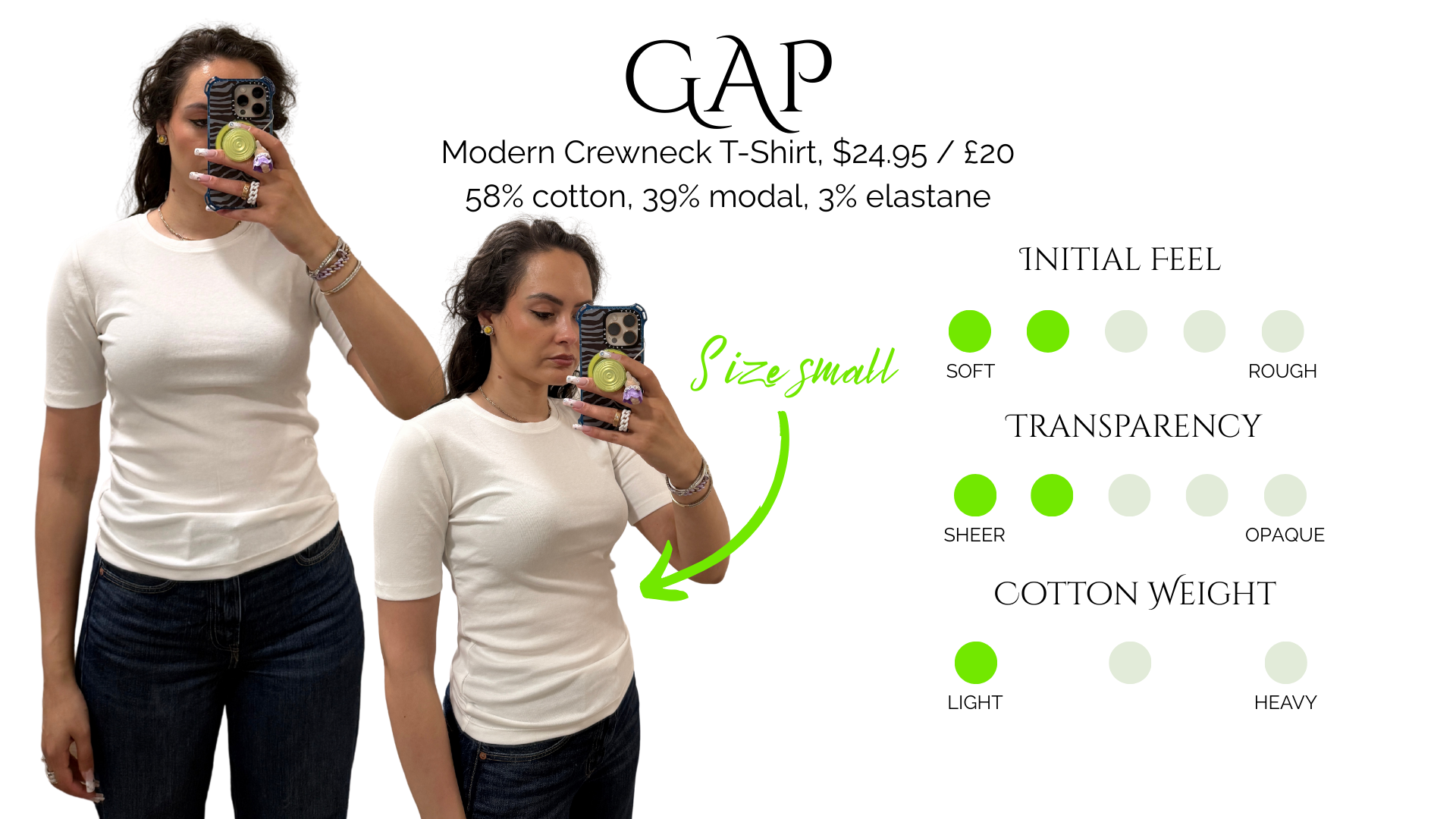 This tee isnāt fully-fledged ribbed but it definitely has some of that texture, the sleeves are cut longer to hit closer to the elbow. This feels like the stretchiest t-shirt in this line up. Iād love to know why this is called āmodernā because it feels a bit vintage to me to be honest.